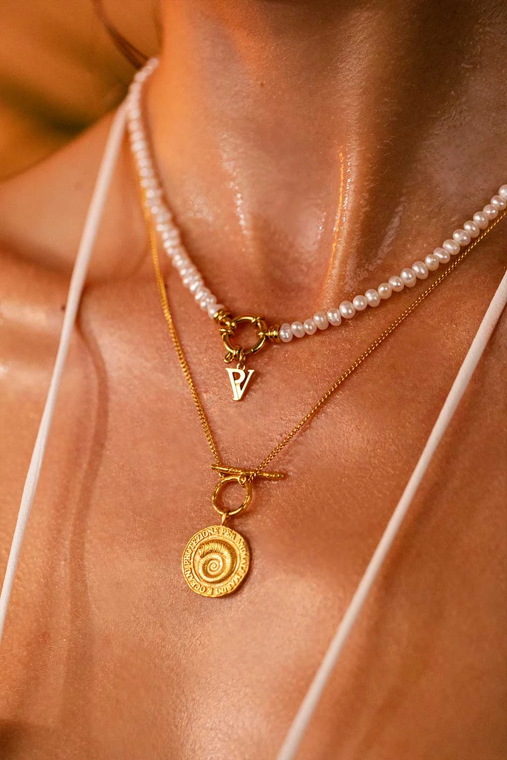 Fall in love with the Allure Coin Necklace featuring a beautiful coin for extra sparkles on your neckline. Dipped in gold, water-resistant, and tarnish-free, it’s the perfect companion for beach outings or long summer nights. Create a beautiful layered look when you combine it with the Classic or Pearl Necklace from the Allure Collection – yes, you deserve them all! Treat yourself to sophisticated jewelry that lasts a lifetime.