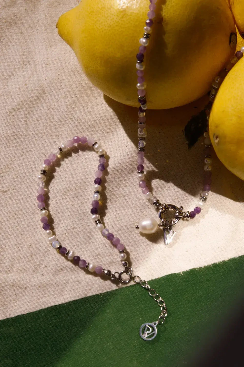 The Amalfi Lilac Bead Necklace is an embodiment of color and elegance. Drawing inspiration from the vibrant hues of Bougainvillea, this necklace captures the lively beauty of the Amalfi Coast. The lilac beads add a playful touch, creating a masterpiece that brings out your personality. The set consists of the Amalfi Lilac Bead Necklace Silver and the Amalfi Lilac Bead Bracelet Silver. Available in Silver & Gold.