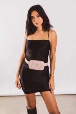 Strut culture and couture with Paul Valentine’s Amber Belt Bag. Crafted with a luxurious elegance, the Amber Belt Bag will complement your natural beauty, giving your look a soft, radiant appeal. Designed with a pink quilted casing made from the best Faux Leather and encrusted with our Paul Valentine logo, this belt bag will undoubtedly become an everyday accessory of yours. Some of the many joys of the belt bag? It is lightweight and easy to wear, enabling you to pack your smartphone, keys and cards with ease. The Amber Belt Bag is also available in multiple colours and sizes and includes an adjustable strap for ultimate comfort.