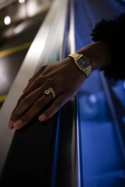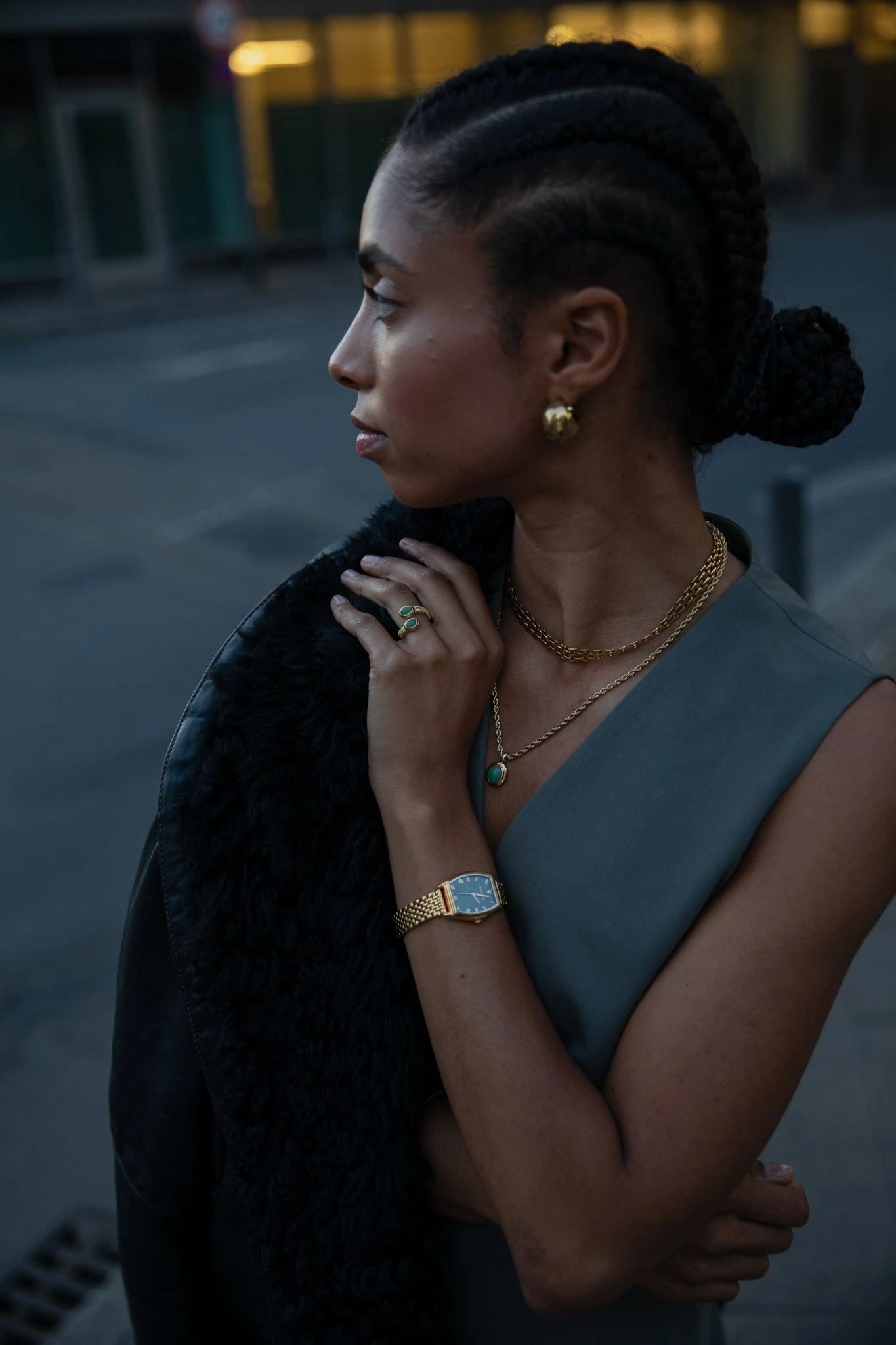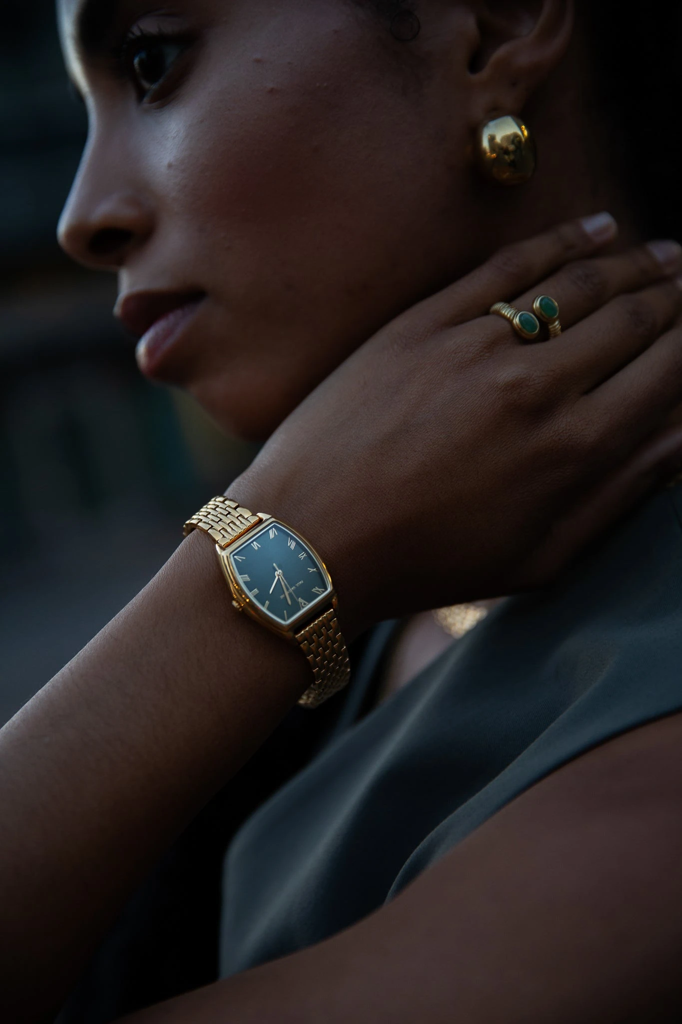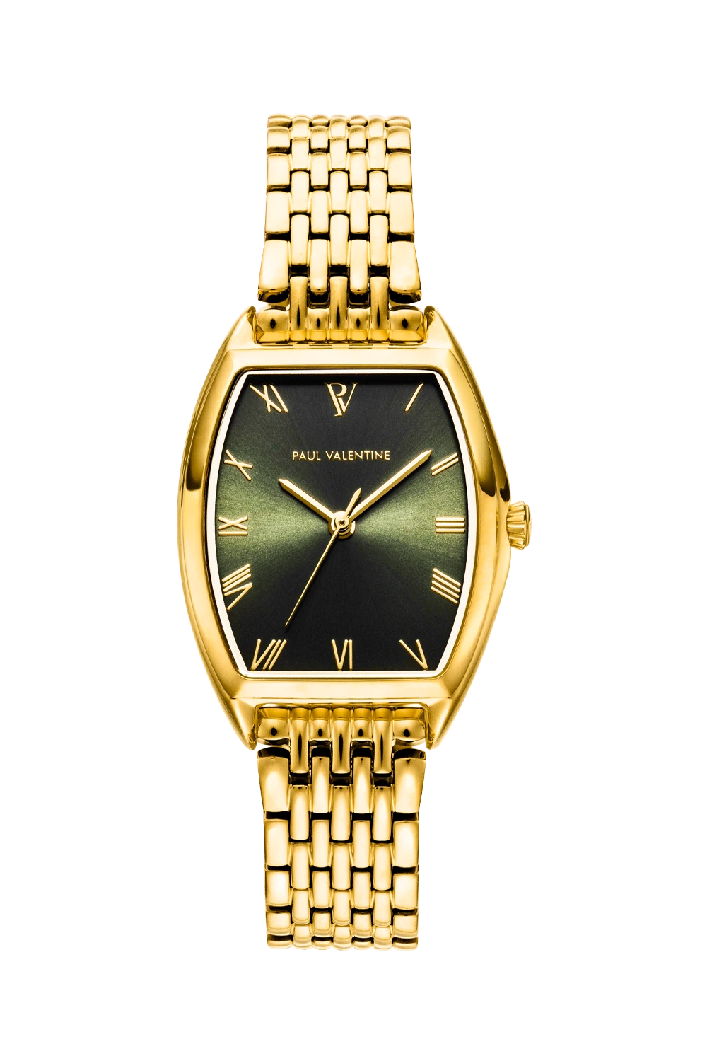 The Avenue Green Watch from our Avenue Collection is an ode to timeless elegance and urban chic. The rounded design with the emerald green dial gives this watch a touch of sophistication and individuality. Fall in love with the radiant Gold and experience the eternal shine of this high-quality watch, which impresses with its outstanding quality and first-class materials.