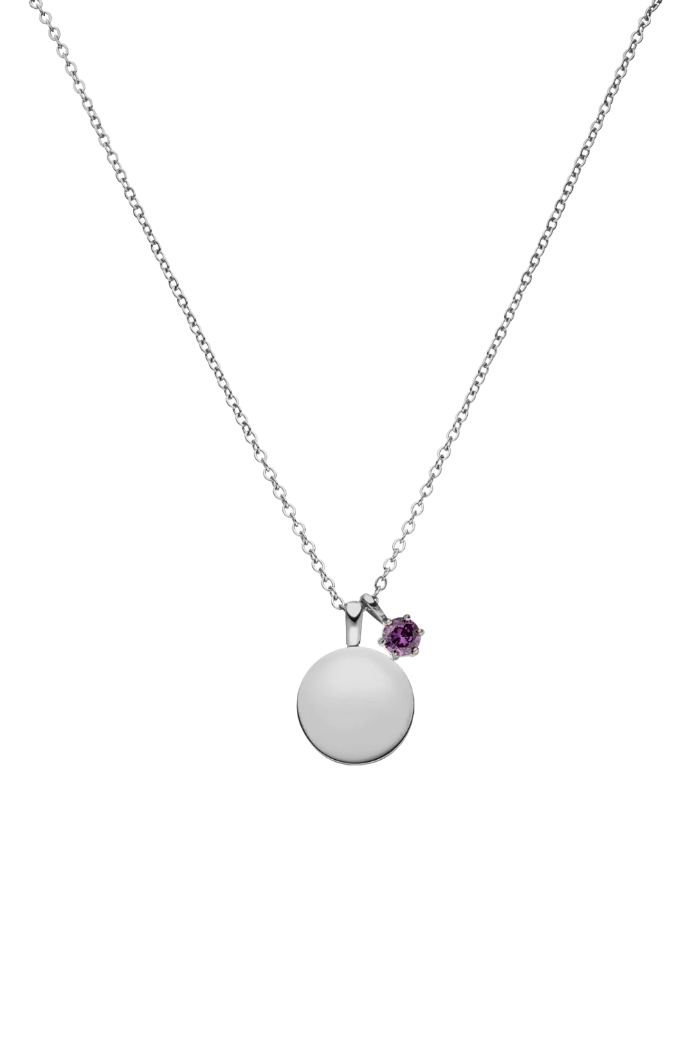 Say hello to our beautiful Birthstone Necklace, a stunning piece that comes with a silver plate and a coloured stone representing your birth month. February stands for sincerity and peace and is represented by a violet zirconia stone. Visit our website paul-valentine.com to add an engraving with your name, initials, or a number on the plate and give this necklace even more meaning (up to 4 characters)! Made from recycled stainless steel.