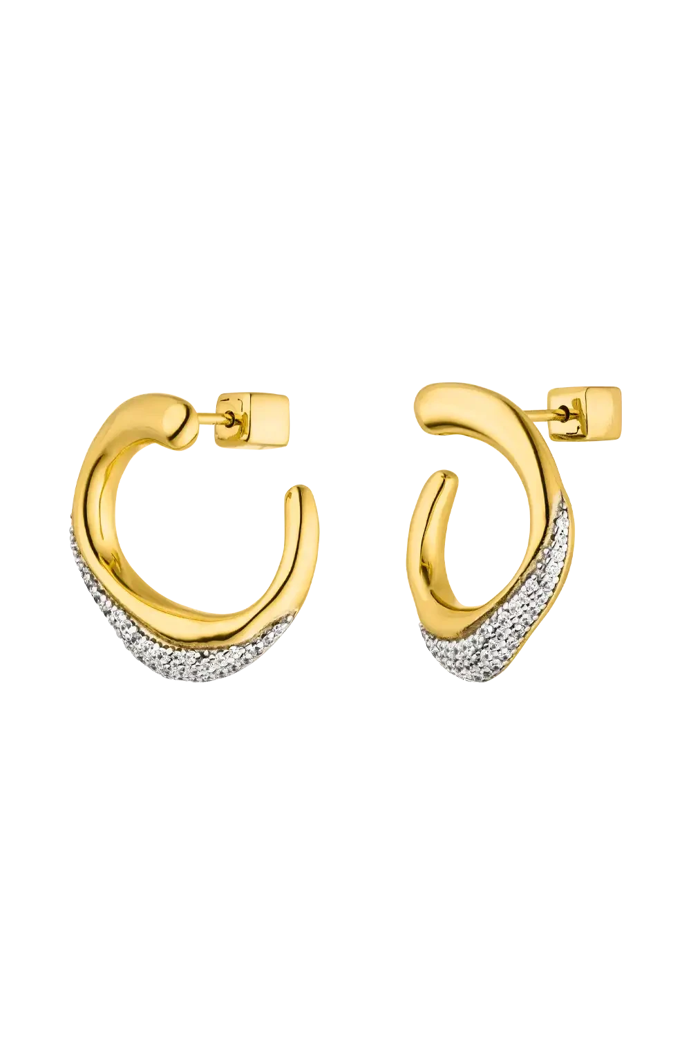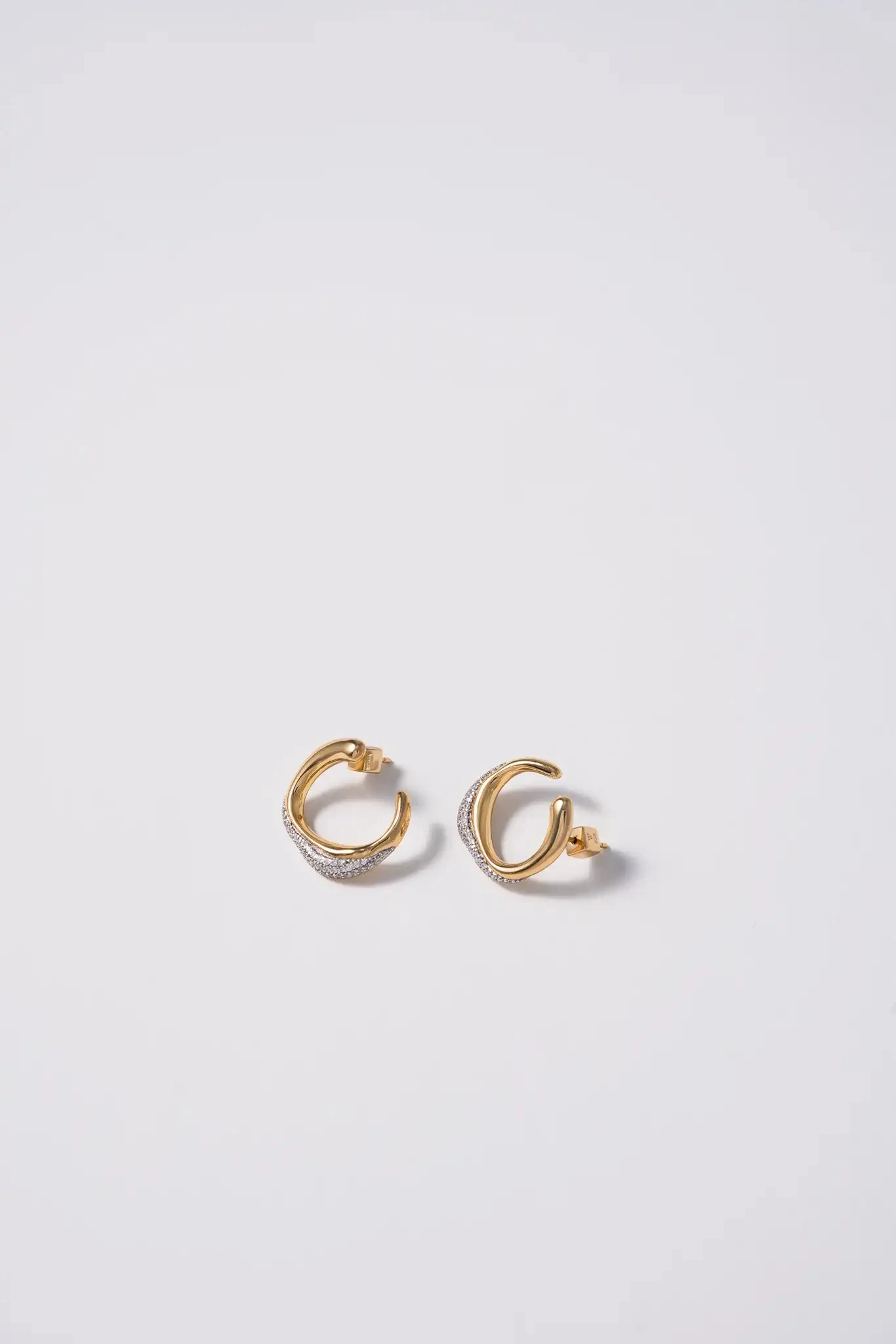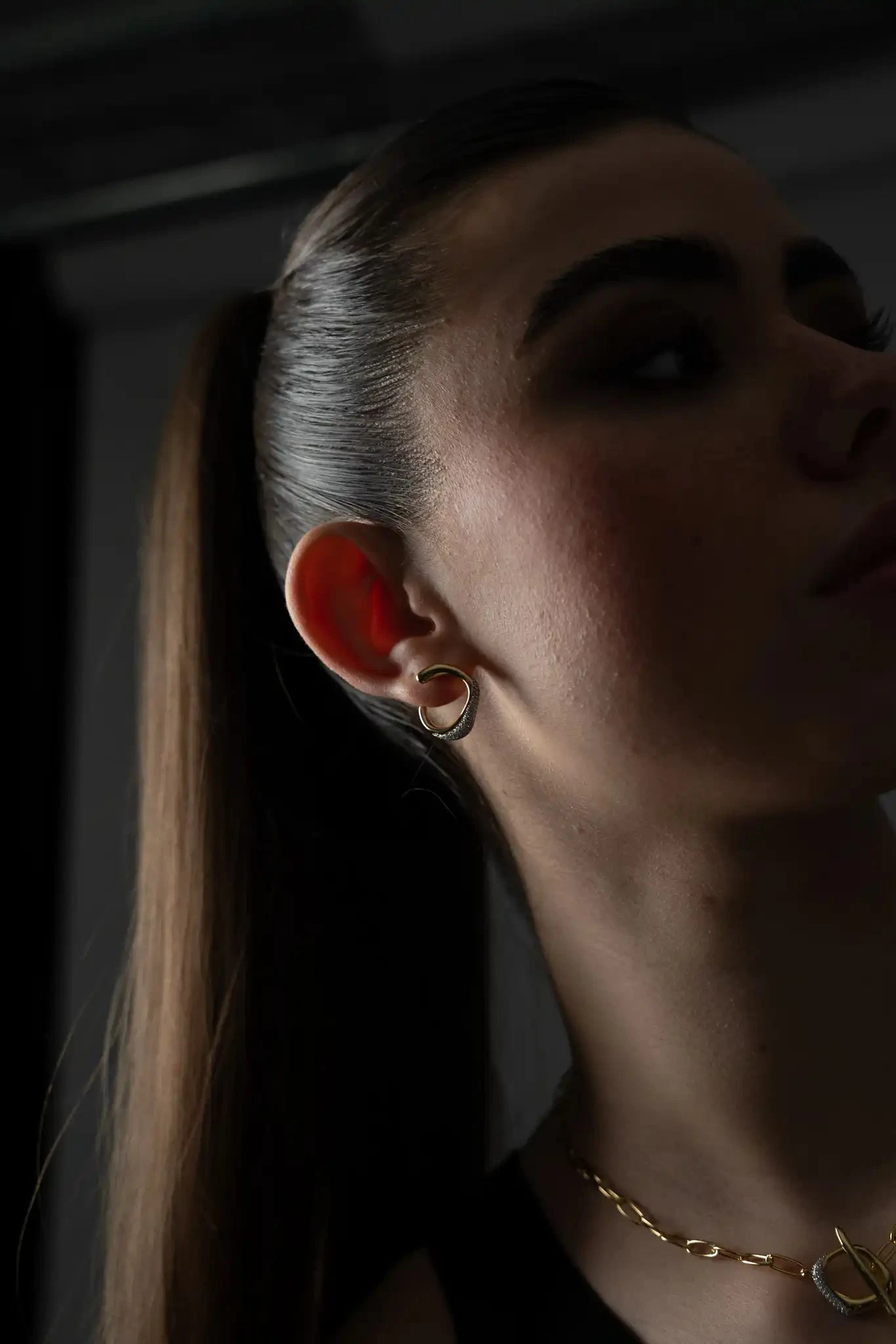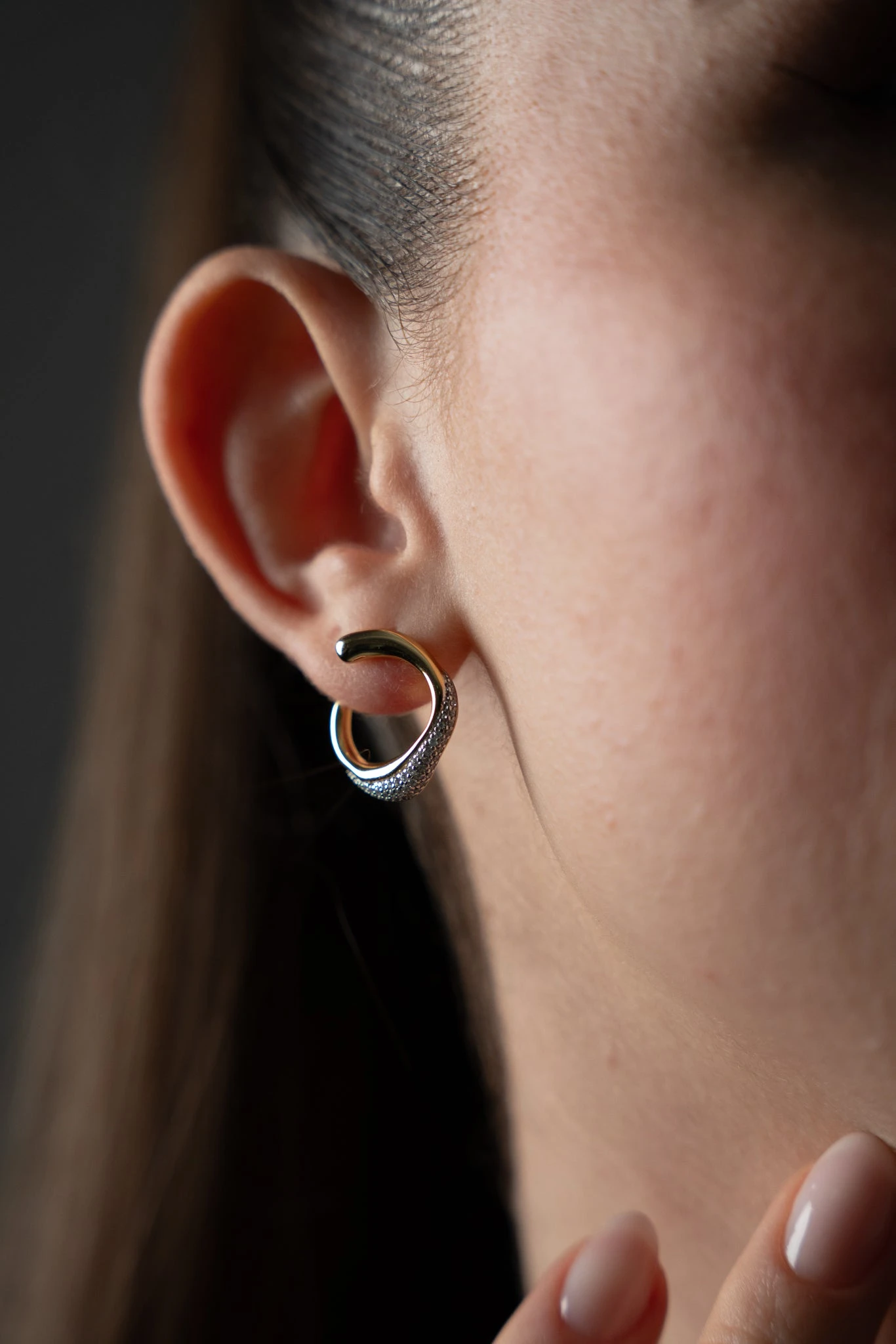 The Crystal Galaxy Ear Studs are a masterpiece of luxury jewelry design, born from a passion for infinite beauty and quality. These earrings are a promise, captured in the brilliance of 925 sterling silver and the soft sheen of 14 carat gold-plated metal, adorned with radiant white zirconia that capture light in a mesmerizing way. Be bold and experiment with different pieces to create a unique style. Available in gold and silver.