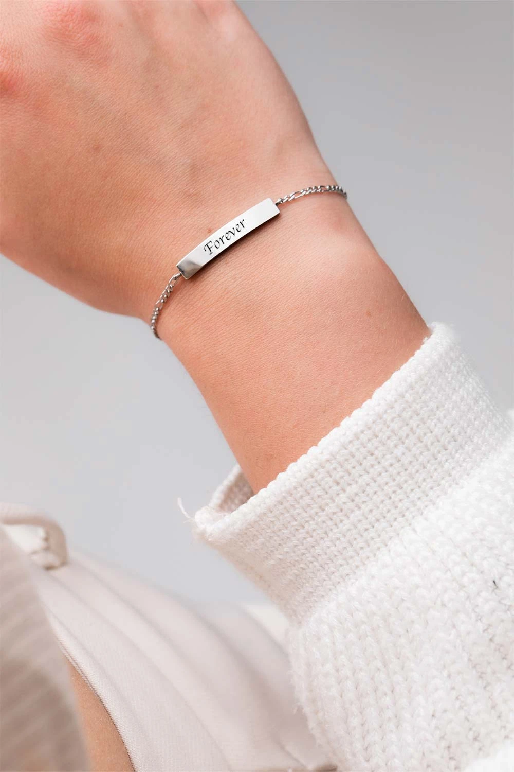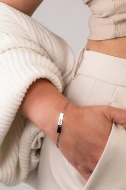 Meet our classic and elegant engravable bracelet that features a small bar with space to engrave up to 8 characters. Whether it’s a moment in time, a cherished loved one, or a daily mantra – you can now engrave something special just for you and carry it with you at all times. Pssst… makes a perfect gift for your bestie, lover, or your mom on Mother’s Day! Available in gold and silver.