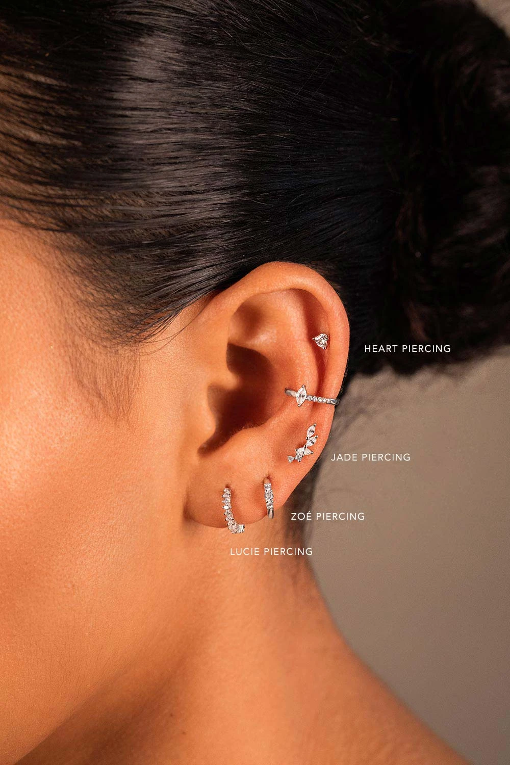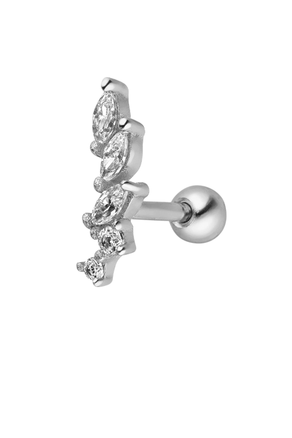 Say hello to Paul Valentine’s very first piercing collection and meet one of our newest beauties on the block: the Jade Piercing. This simple stud features a row of oval-shaped zirconia stones that flow into an organic half-moon shape. Treat yourself to a feminine piece that complements your signature look. It will remind you to feel beautiful and confident inside out, every day of the year. Available in sterling silver and 14k gold. Please note: This product is a single piercing with just one piece, not a set of earrings.