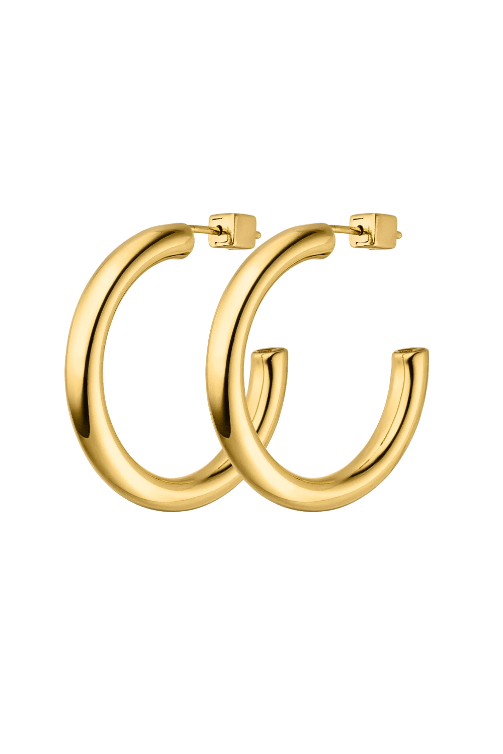 On the lookout for a timeless piece for your everyday look? Meet our new Lea Hoops – the perfect addition to anyone’s beloved jewelry collection! Bigger than a huggie and smaller than a fashion statement hoop, this one is an absolute essential that works both as a standalone or in a stack with a smaller hoop. Whether you’re off to a casual date night or after-hour drinks with the new boss, this one will make you feel a million bucks. Available in silver and gold.