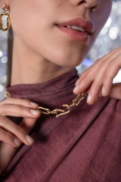 The Molten Chunky Necklace from the Space Safari collection is the ultimate statement piece for anyone who wants to combine style and sustainability. Inspired by the infinite expanses of space and galactic debris, this necklace is made from chunky, interlocking stainless steel links. The futuristic design captures the aesthetics of science fiction while embodying a natural inspiration. Available in gold and silver, made from high quality stainless steel.