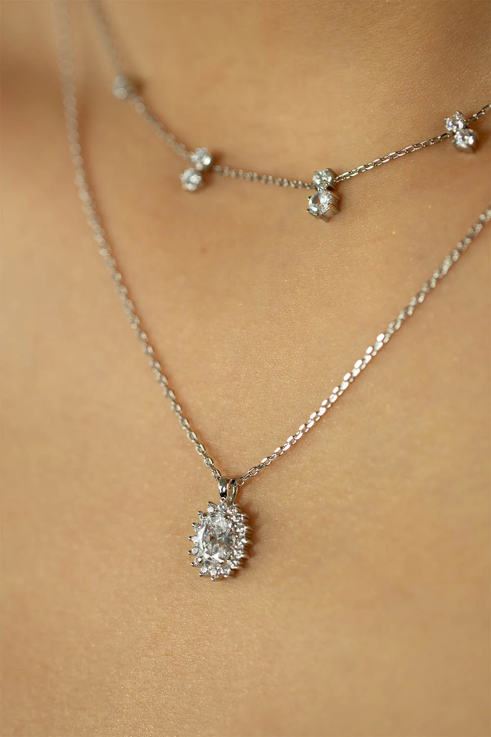 Fall in love with our Sparkle Oval Necklace from the Sparkle Collection. A large, eye-catching zirconia stone is the heart of this elegant necklace with small zirconia stones lining the centrepiece and adding even more sparkle to your neckline. Love to create a unique layering? Combine this piece with the Sparkle Necklace from our Sparkle Collection. Available in silver and gold.