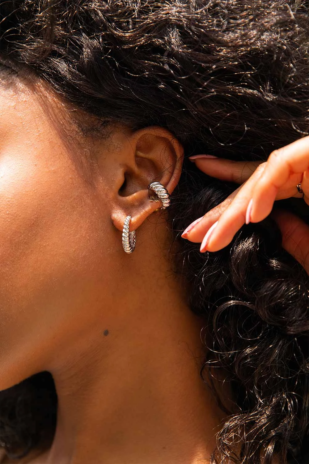 Hugging is a silent way of saying: you matter to me! Show yourself some love with these elegant earcuffs that will make you shine even more this summer. Dipped in rhodium, water-resistant as well as tarnish-free, these handmade pieces will last a lifetime. They make a perfect stack with a pair of big or small hoops from the Twista Collection – yes, you deserve them all!